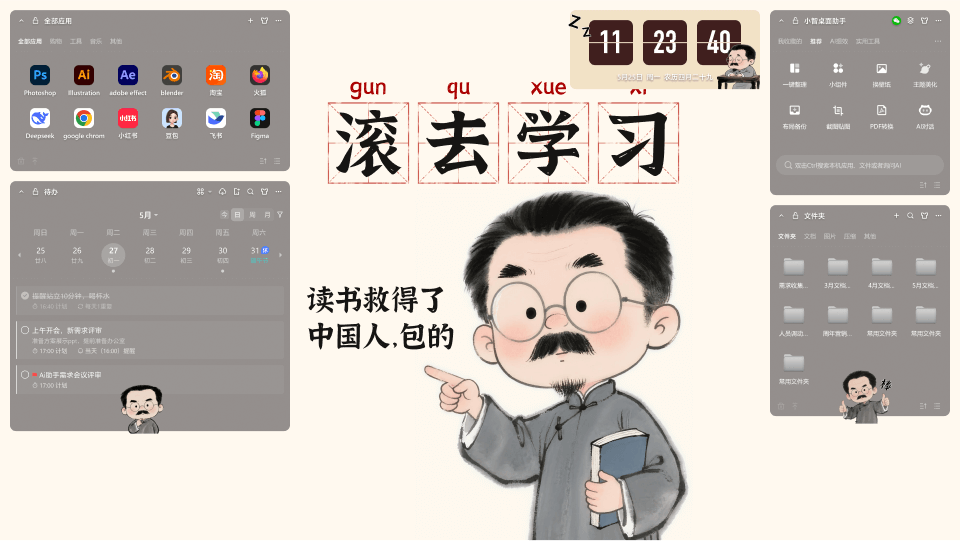 • 桌面組件自由搭配,重要事項(xiàng)一目了然
